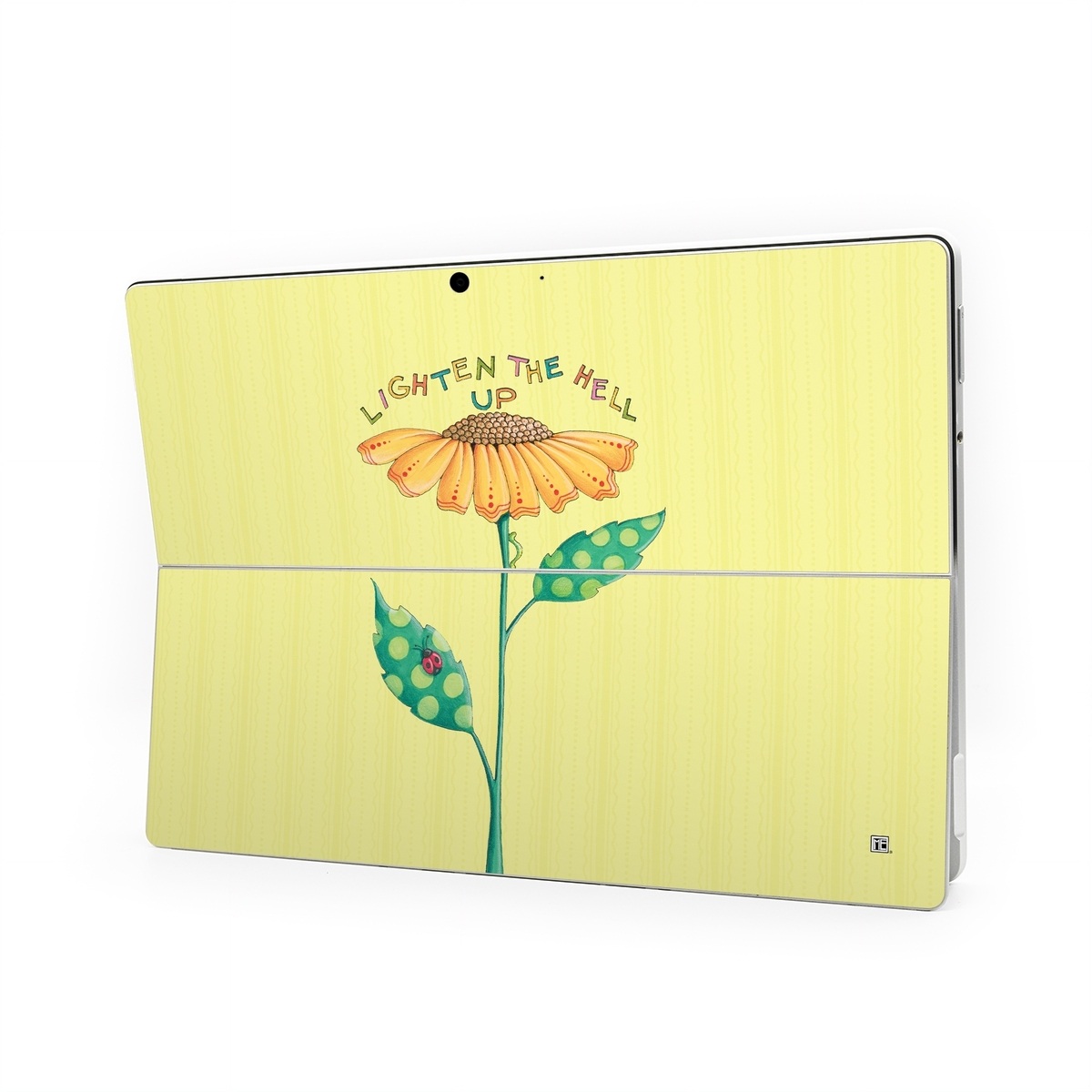 iStyles Microsoft Surface Pro Series Skin design of Flower, Plant, Botany, Flowering plant, Illustration, Wildflower, Daisy family, Coneflower, Pedicel, with yellow, green, red, black, orange, blue colors, and tagged with signs, flowers, animals, flower, funny, humor, ladybug.