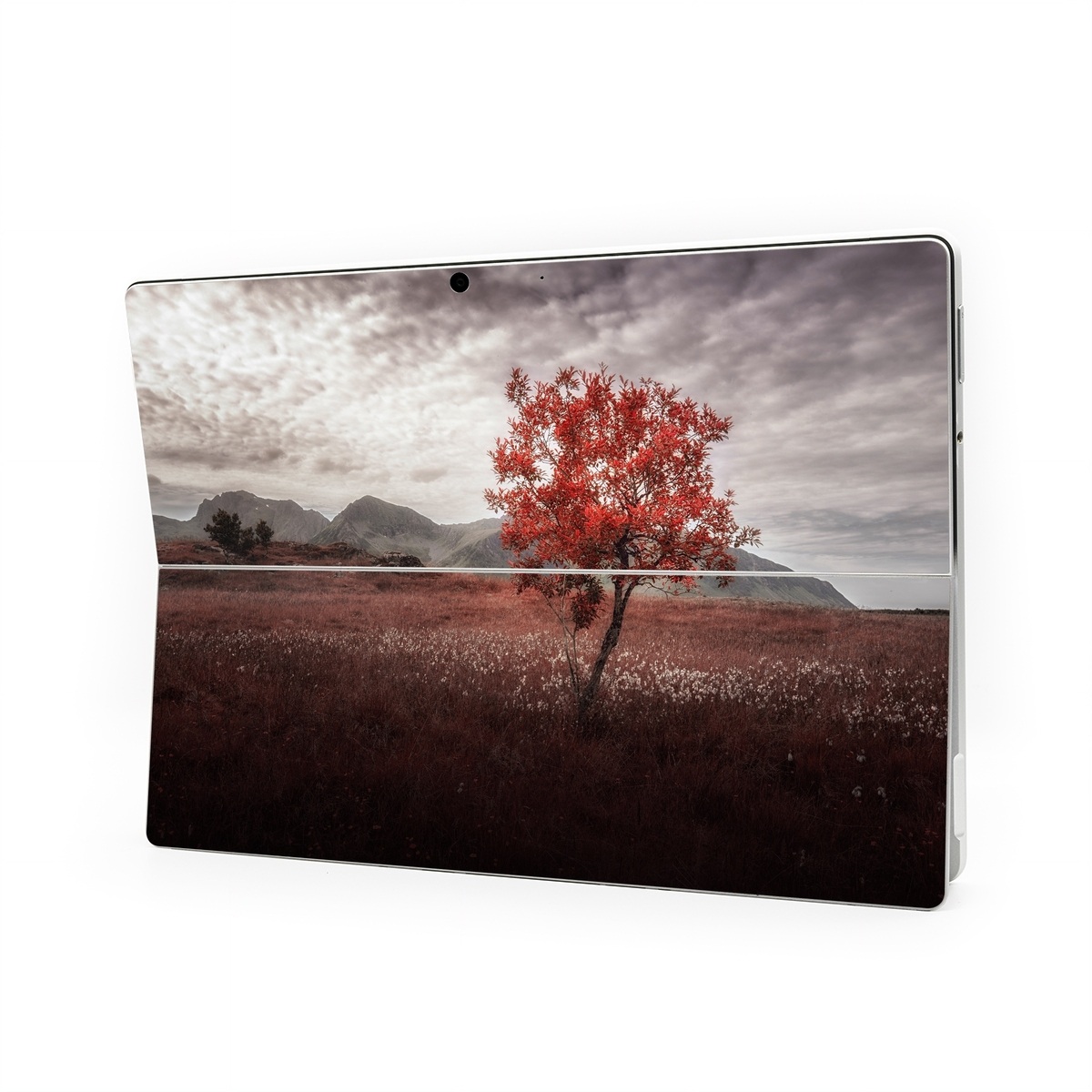 iStyles Microsoft Surface Pro Series Skin design of Natural landscape, Nature, Tree, Sky, Red, Natural environment, Atmospheric phenomenon, Leaf, Cloud, Woody plant, with black, gray, red colors, and tagged with nature.