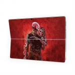 iStyles Microsoft Surface Pro Series Skin design of Sleeve, Gesture, Painting, Art, Artist, Fictional character, Drawing, Paint, Illustration, Visual arts, with red, black, white, gray, brown colors, and tagged with skulls, objects, honesty, mistrust, faith, smoking, gun, couple.