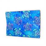 iStyles Microsoft Surface Pro Series Skin design of Blue, Pattern, Organism, Design, Sea turtle, Plant, Electric blue, Hydrangea, Flower, Symmetry, with blue, green, purple colors, and tagged with patterns, animals, flower, nature, sealife, turtle, turtles, watercolor.