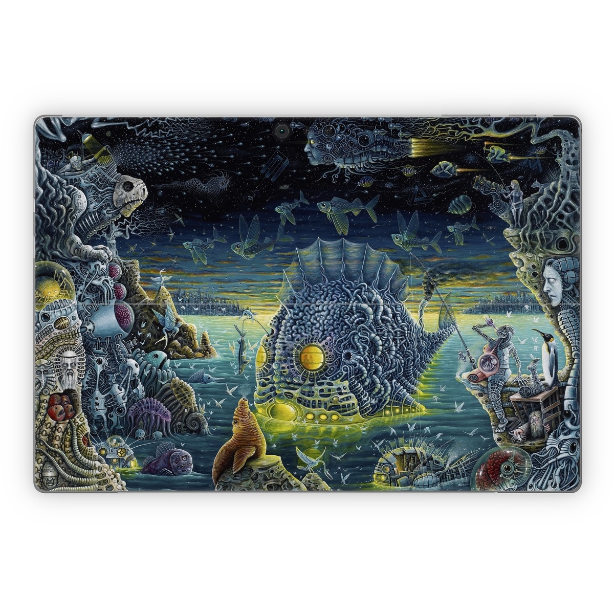 iStyles Microsoft Surface Pro Series Skin design of Organism, Water, Illustration, Art, Painting, Cg artwork, Fiction, Fictional character, Marine biology, Mythology, with black, gray, blue, green colors, and tagged with animals, fantasy.