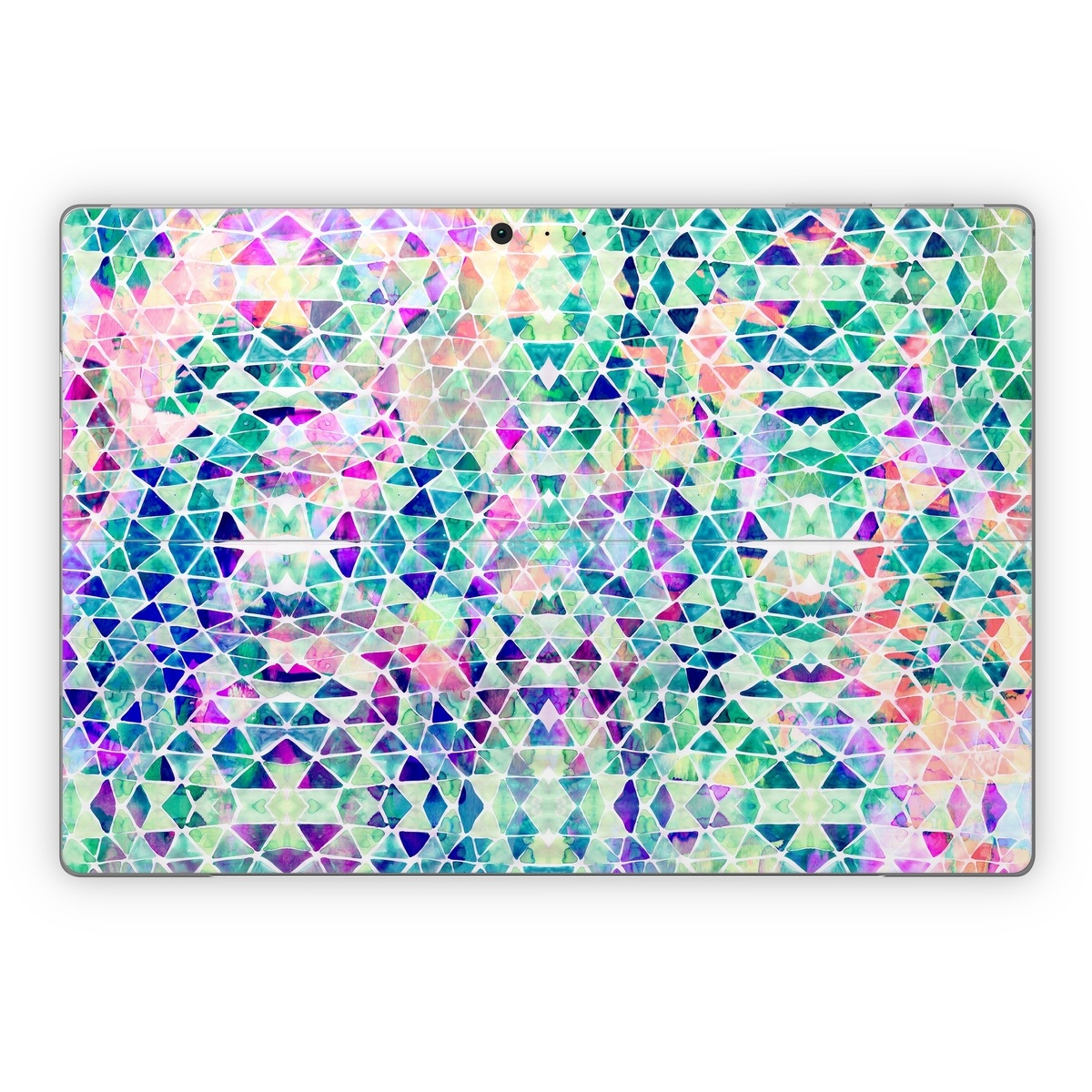 iStyles Microsoft Surface Pro Series Skin design of Pattern, Aqua, Line, Teal, Purple, Turquoise, Design, with white, blue, purple, orange, green colors, and tagged with patterns, abstract.