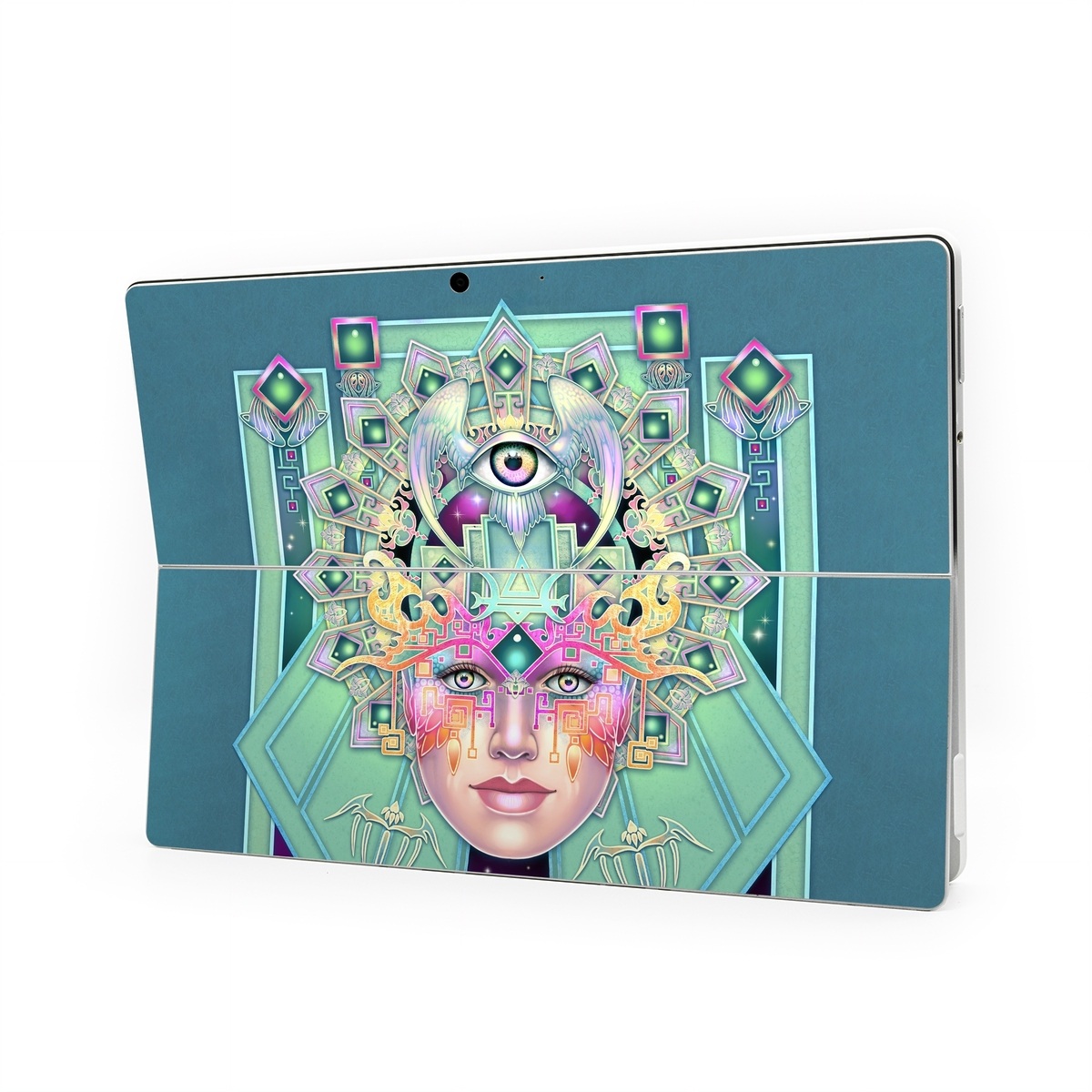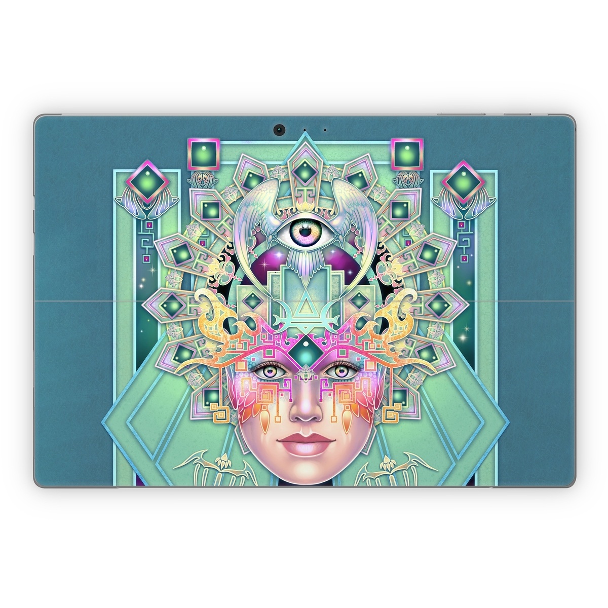 iStyles Microsoft Surface Pro Series Skin design of Head, Eye, Eyelash, Font, Art, Magenta, Rectangle, Painting, Illustration, Pattern, with blue, green, yellow, red, purple, white colors, and tagged with fantasy, people, signs, objects, eye, wings, thankful.
