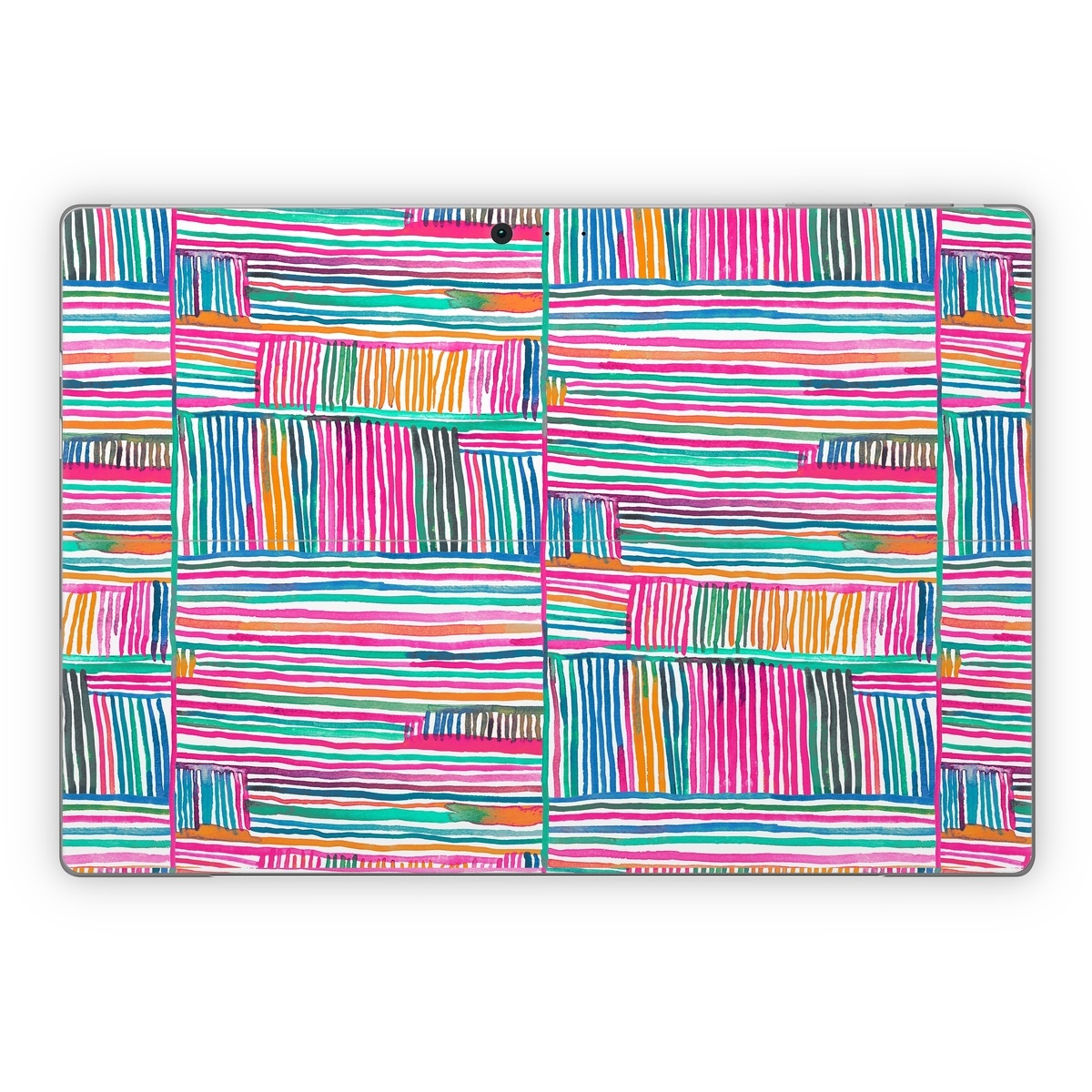 iStyles Microsoft Surface Pro Series Skin design of Colorfulness, Product, Rectangle, Azure, Textile, Art, Aqua, Material property, Magenta, Tints and shades, with white, pink, orange, green, blue, yellow colors, and tagged with patterns, stripes, pattern.
