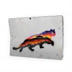 iStyles Microsoft Surface Pro Series Skin design of Illustration, Watercolor paint, Art, Tail, Painting, Drawing, Acrylic paint, Geological phenomenon, Red fox, Paint, with gray, black, red, yellow, orange, white colors, and tagged with animals, nature, space, animals, cat, cougar, moon, nature, night, stars, watercolor.