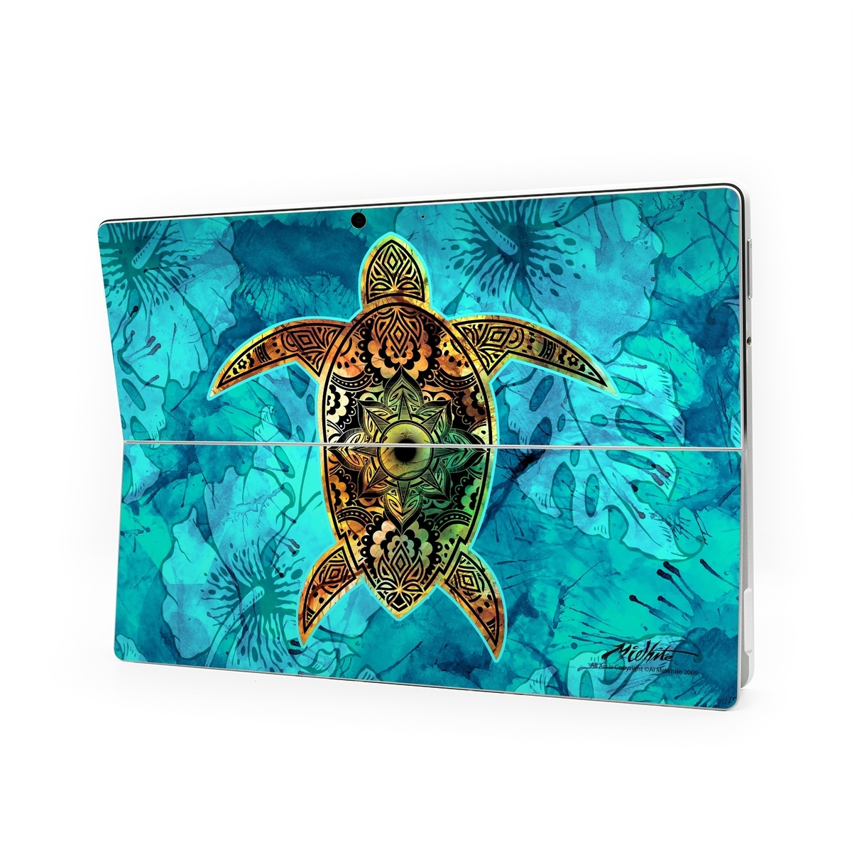 iStyles Microsoft Surface Pro Series Skin design of Sea turtle, Green sea turtle, Turtle, Hawksbill sea turtle, Tortoise, Reptile, Loggerhead sea turtle, Illustration, Art, Pattern, with blue, black, green, gray, red colors, and tagged with animals.
