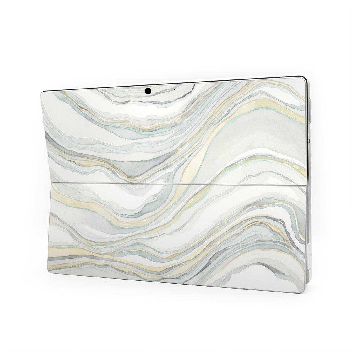 iStyles Microsoft Surface Pro Series Skin design of Line, Pattern, with yellow, white, blue, gray colors, and tagged with patterns, abstract, earthtones, neutral, watercolor.