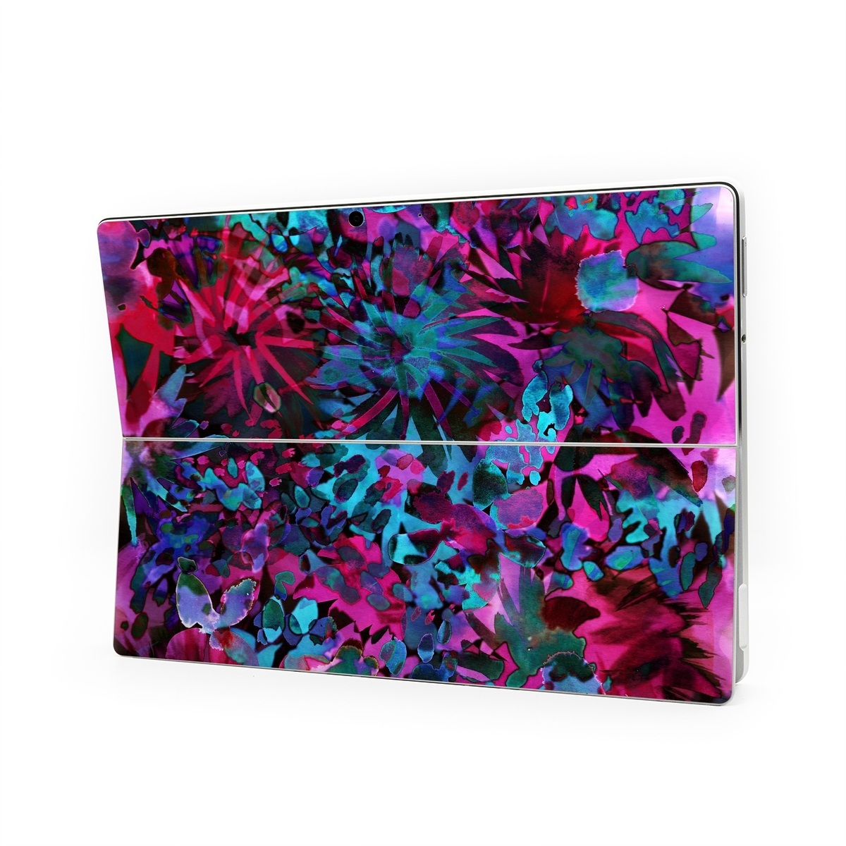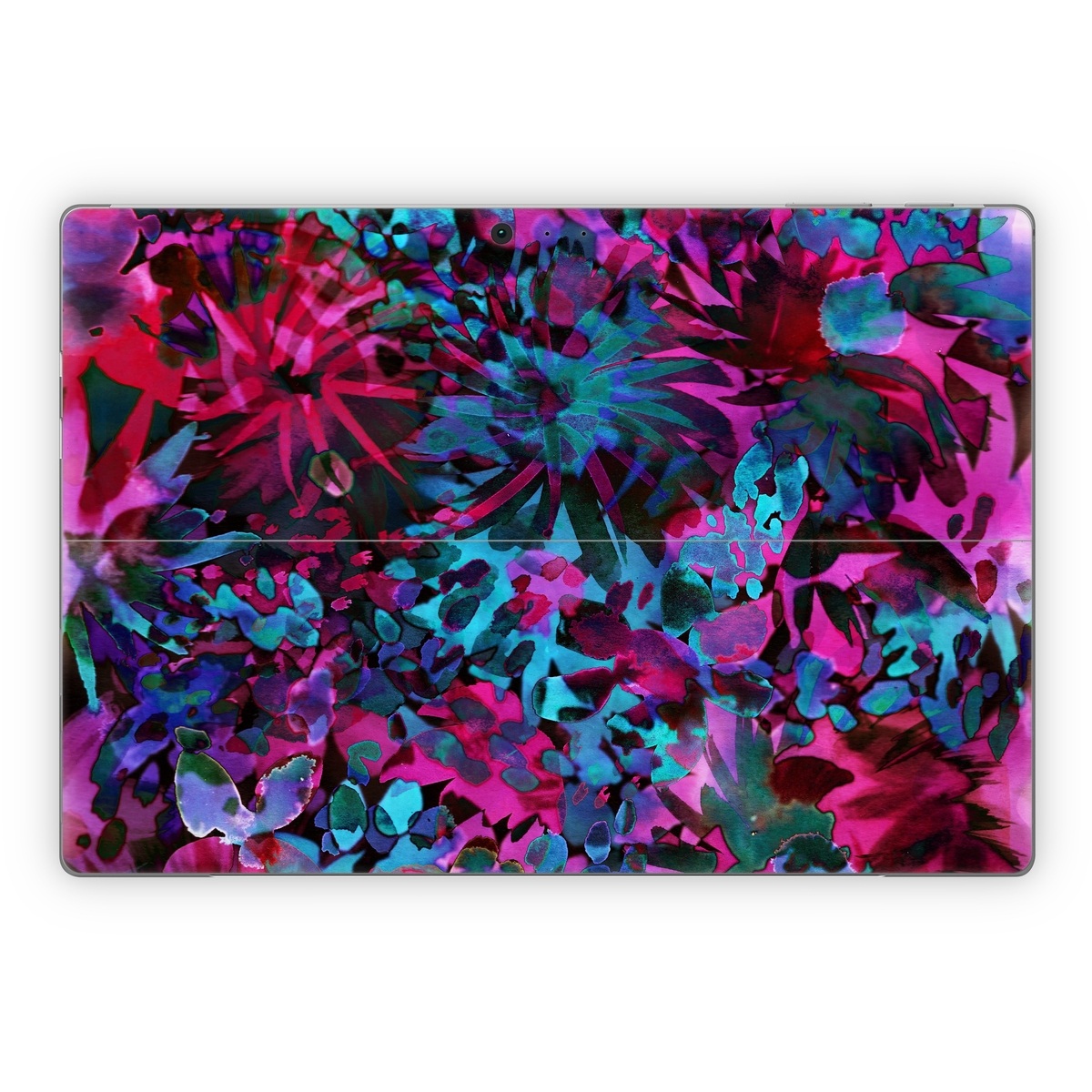 iStyles Microsoft Surface Pro Series Skin design of Pink, Purple, Violet, Lilac, Flower, Leaf, Plant, Magenta, Botany, Pattern, with black, pink, purple, blue, green colors, and tagged with patterns, flowers, abstract, abstract, bright, colorful, floral, flowers, summer, tropical, watercolor.