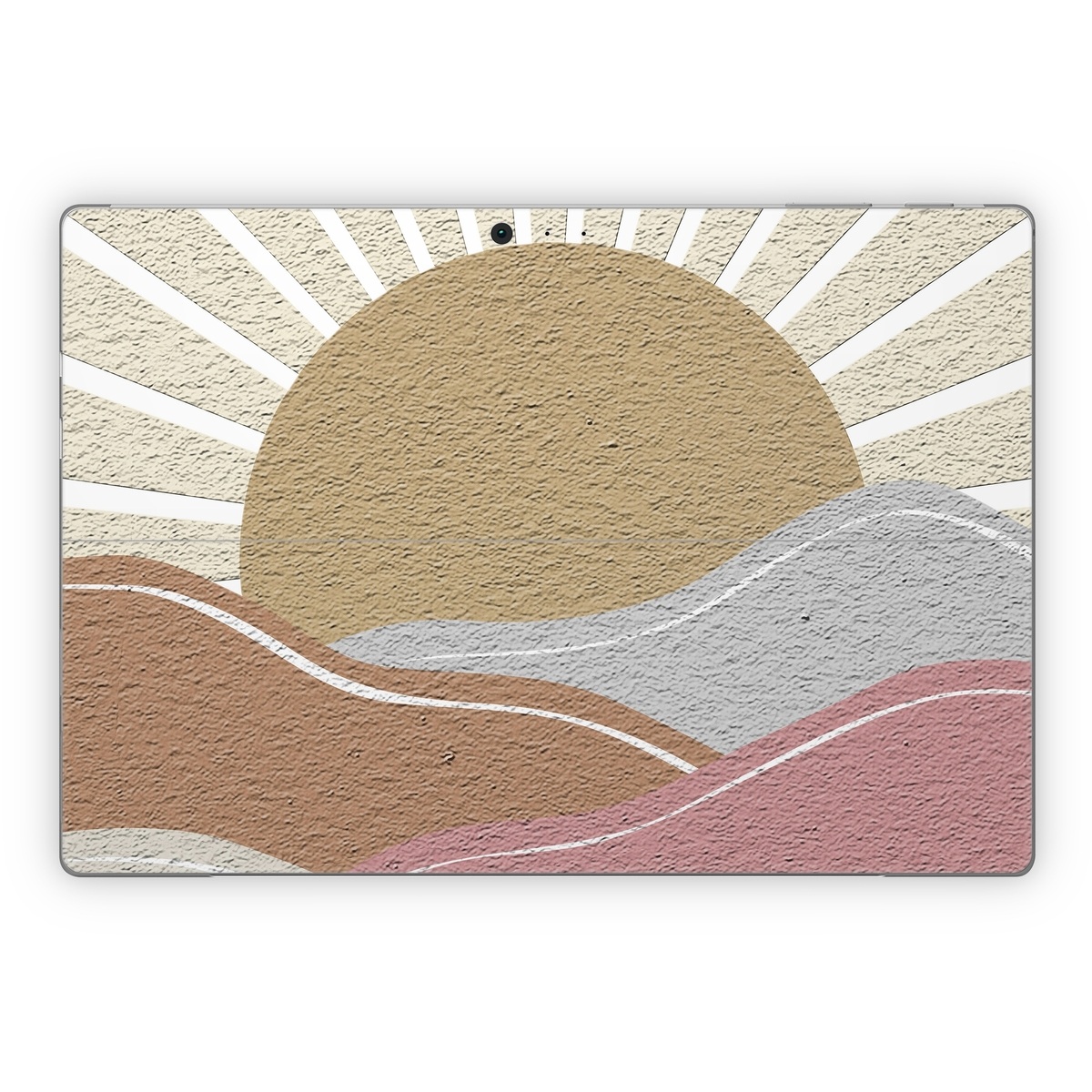 iStyles Microsoft Surface Pro Series Skin design of Art, Pattern, Symmetry, Tints and shades, Slope, Building material, Circle, Visual arts, Creative arts, Metal, with yellow, pink, gray, white, brown colors, and tagged with nature, sunset, clouds.