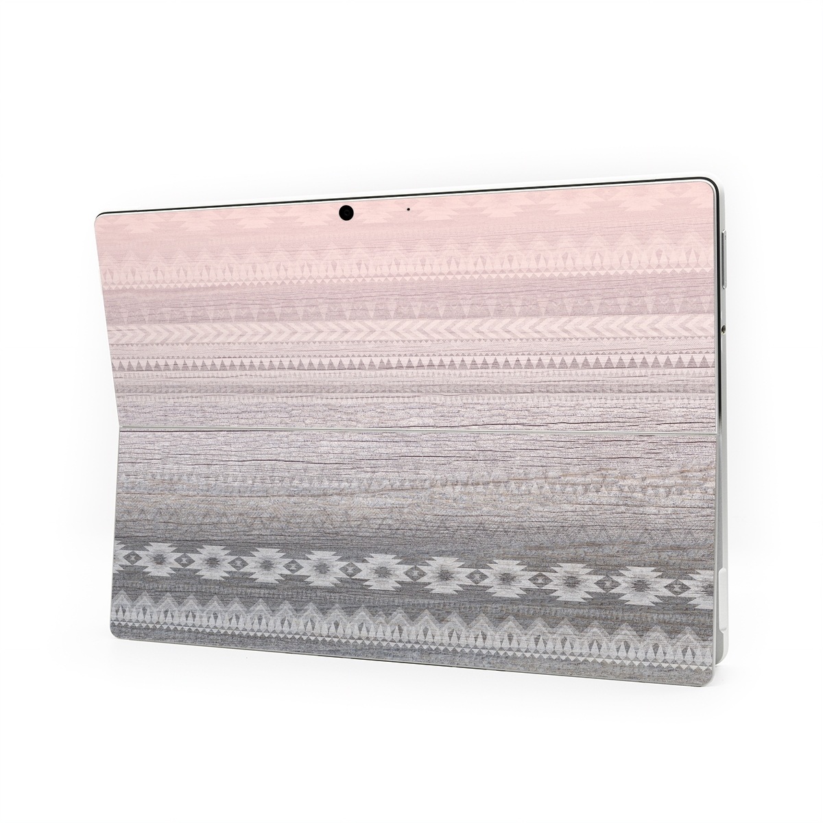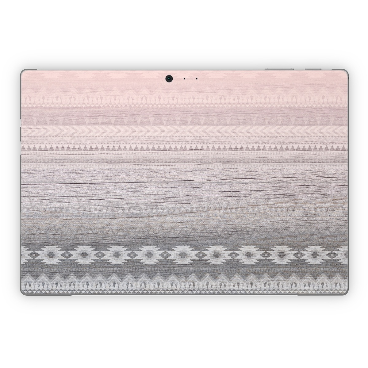 iStyles Microsoft Surface Pro Series Skin design of White, Beige, Textile, Pattern, Lace, Tablecloth, Linen, Linens, with pink, white, gray colors, and tagged with patterns, nature, natural, nature, pattern, pink, tribal, wood.