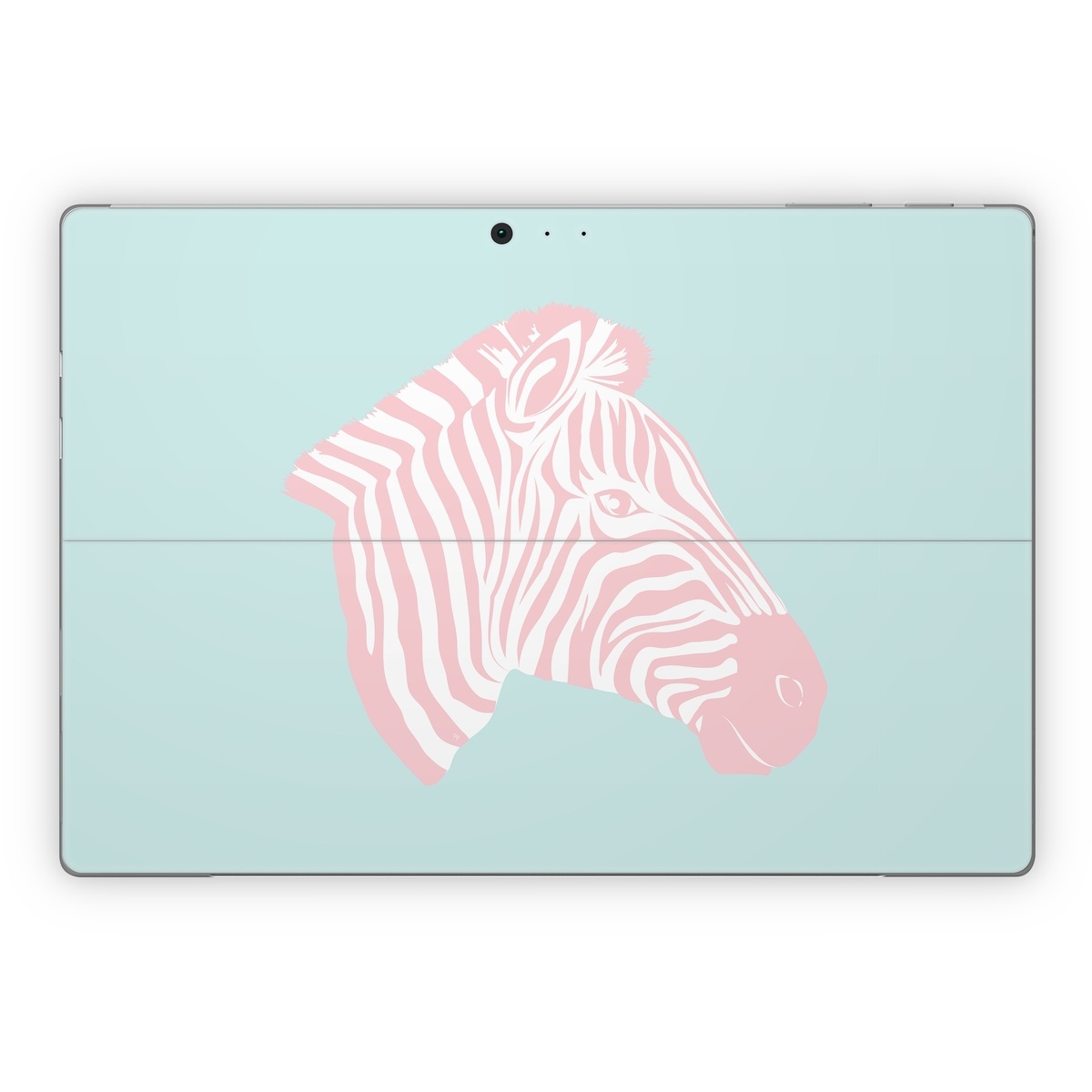 iStyles Microsoft Surface Pro Series Skin design of Sleeve, Fin, Art, Terrestrial animal, Snout, Painting, Fish, Marine biology, Magenta, Pattern, with pink, white, blue colors, and tagged with patterns, animals, pink, stripes, zebra.