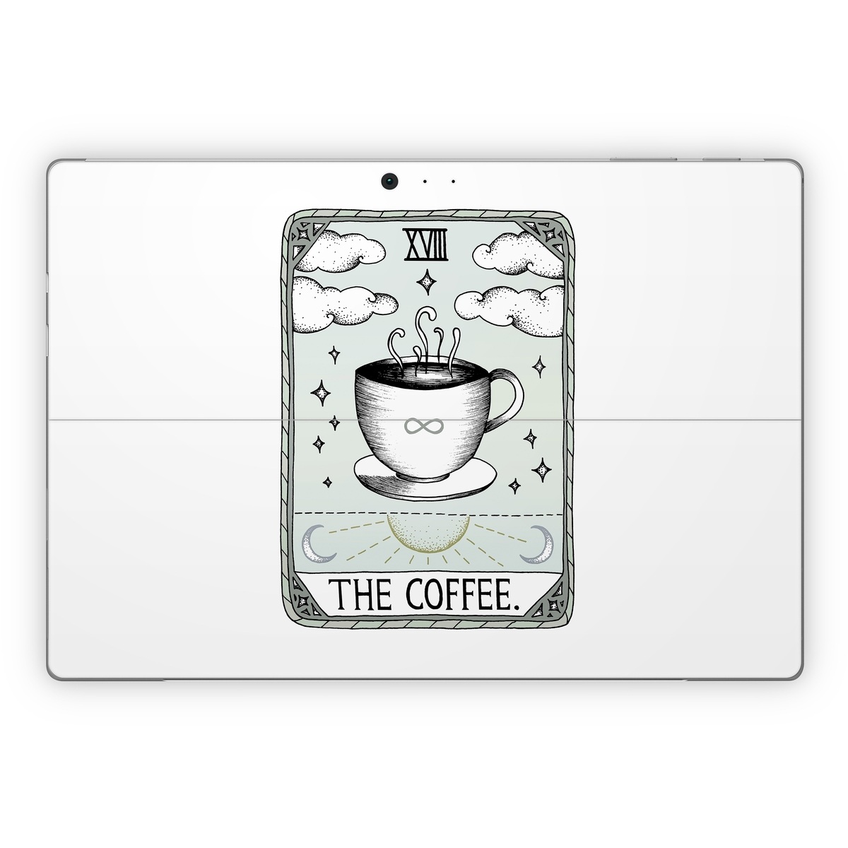 iStyles Microsoft Surface Pro Series Skin design of Cup, Cartoon, Drinkware, Coffee cup, Tableware, Teacup, Illustration, Drink, Line art, with white, black, green, gray, yellow colors, and tagged with objects, signs, space, coffee, handdrawn, pastel, sketch, tarot.