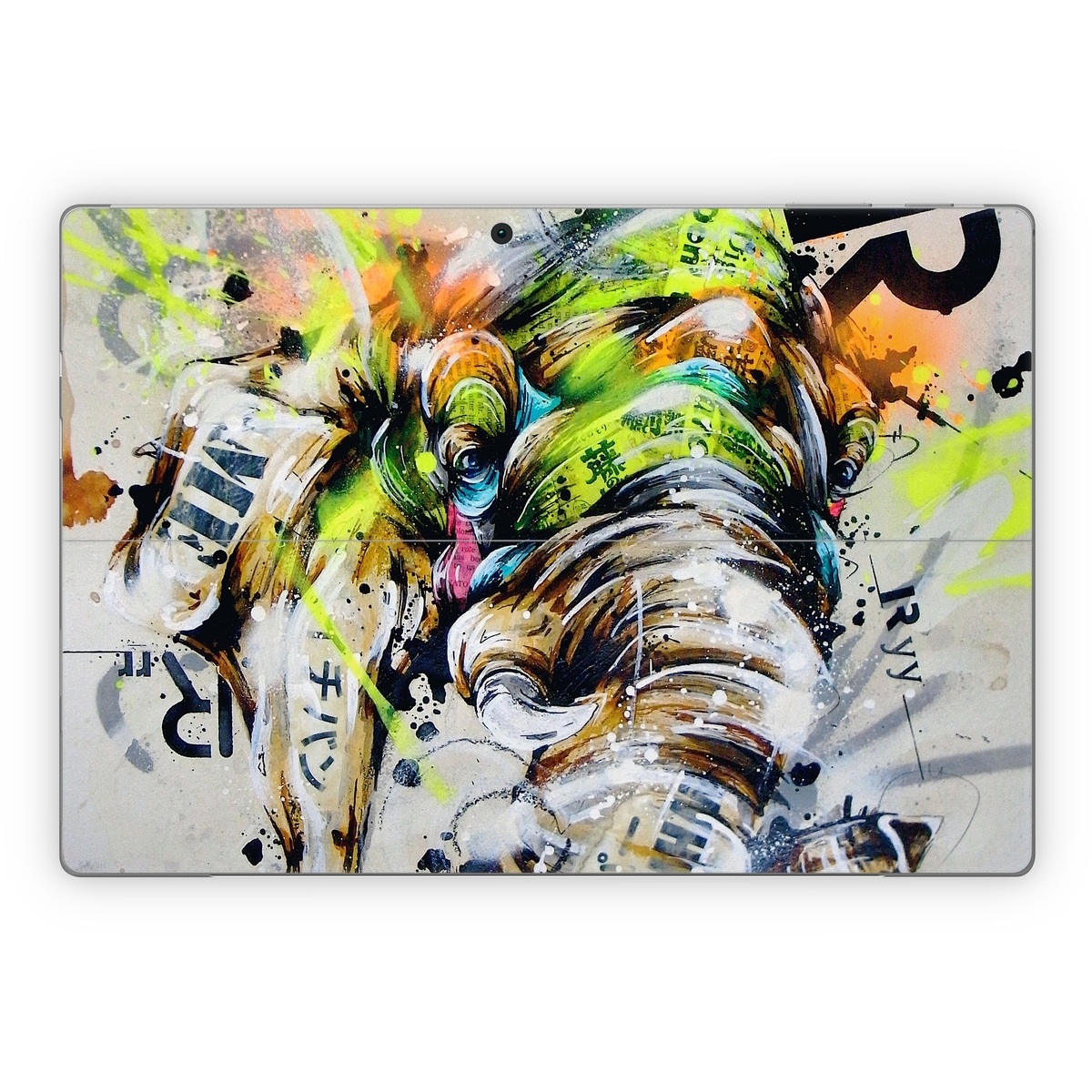 iStyles Microsoft Surface Pro Series Skin design of Watercolor paint, Graphic design, Illustration, Acrylic paint, Art, Modern art, Painting, Visual arts, Paint, Graphics, with gray, black, green, red, blue colors, and tagged with abstract, animals.