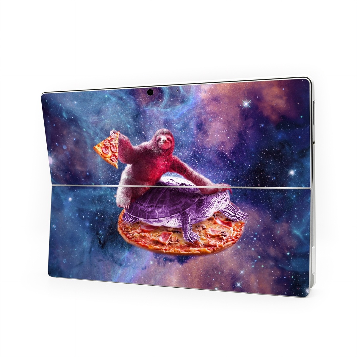 iStyles Microsoft Surface Pro Series Skin design of Illustration, Pink, Turtle, Art, Sea turtle, Space, Painting, Fictional character, Tortoise, with black, white, blue, gray, red, yellow colors, and tagged with space, animals, fantasy, animals, funny, galaxy, lasers, random, space, weird.