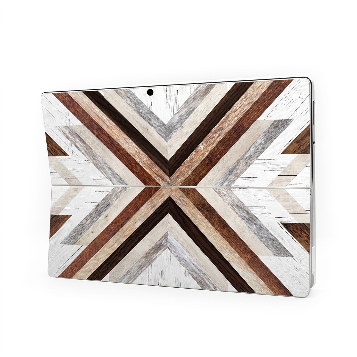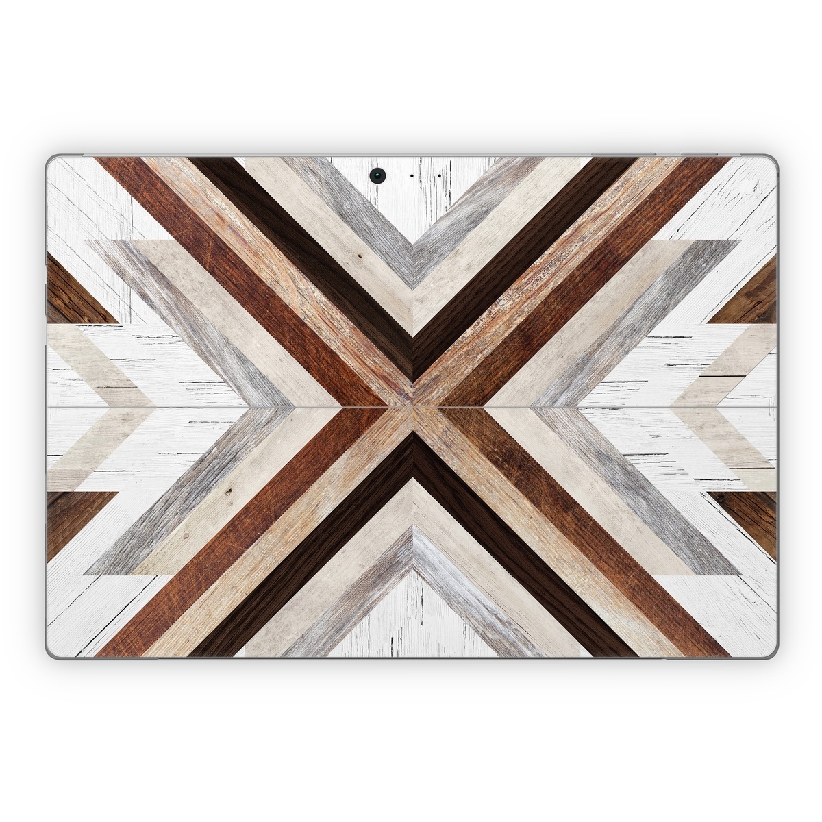 iStyles Microsoft Surface Pro Series Skin design of Architecture, Line, Pattern, Brown, Symmetry, Wood, Design, Building, Facade, Material property, with white, brown, gray colors, and tagged with lookslike, patterns, nature, finish, geometric, natural, nature, stained, wood, wooden.