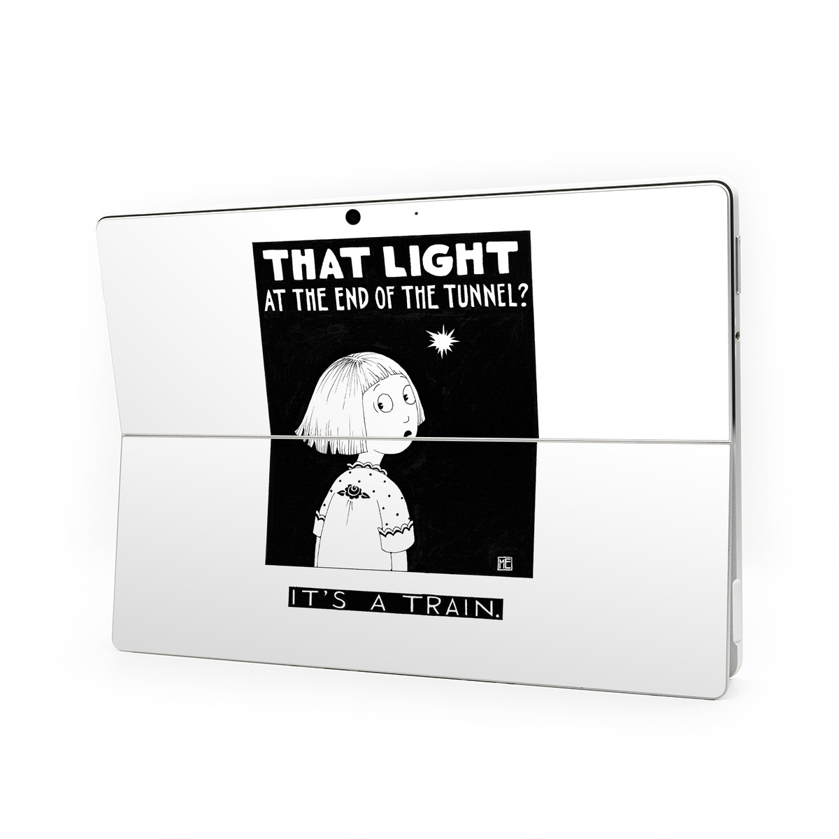 iStyles Microsoft Surface Pro Series Skin design of Cartoon, Poster, Font, Black-and-white, Fictional character, Illustration, Coloring book, with black, white colors, and tagged with people, signs, funny, humor, sarcasm, train.