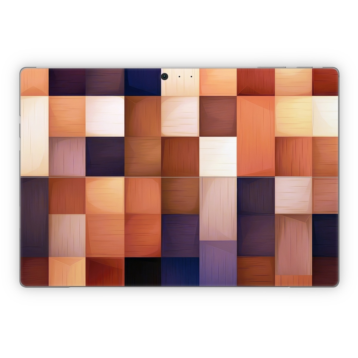 iStyles Microsoft Surface Pro Series Skin design of Brown, Light, Rectangle, Product, Wood, Blue, Orange, Amber, Textile, Wood stain, with yellow, orange, red, black, brown, blue, purple colors, and tagged with patterns, autumn, fall, pattern, squares.