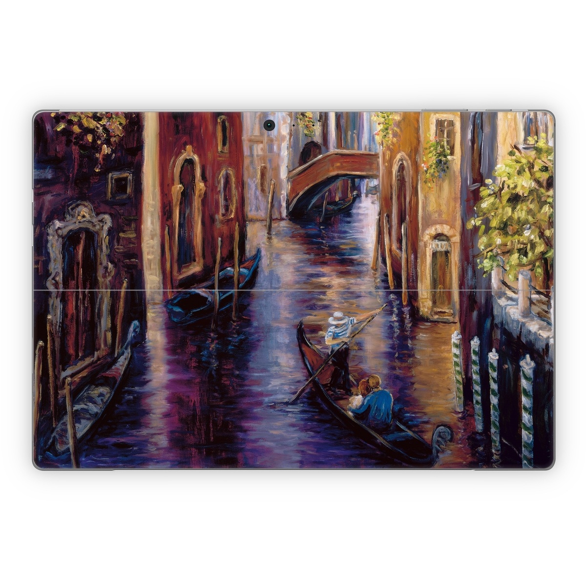 iStyles Microsoft Surface Pro Series Skin design of Painting, Watercolor paint, Waterway, Gondola, Canal, Art, Modern art, Acrylic paint, Visual arts, Building, with black, gray, red, green, blue, pink colors, and tagged with fineart, urban.