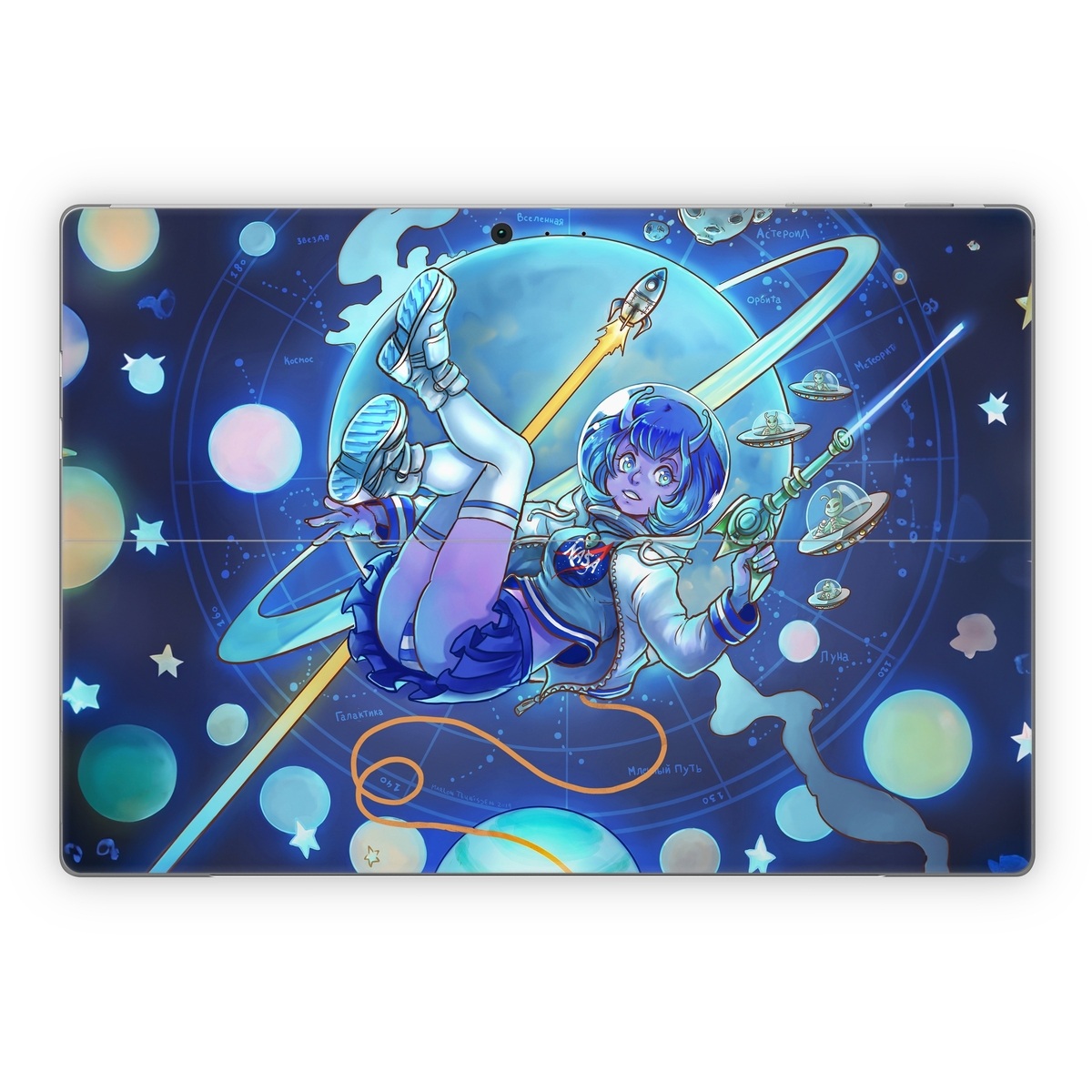 iStyles Microsoft Surface Pro Series Skin design of Cartoon, Illustration, Graphic design, Games, Space, Design, Anime, Art, Graphics, Fictional character, with blue, white, yellow, purple, green, red, orange, black colors, and tagged with people, fineart, fantasy, space, objects, alien, aliens, anime, astrology, girl, outerspace, pinup, space.