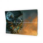 iStyles Microsoft Surface Pro Series Skin design of Dragon, Cg artwork, Fictional character, Mythical creature, Demon, Mythology, Illustration, Cryptid, Art, with orange, yellow, black, brown, blue, white colors, and tagged with fantasy, animals, skulls, people, objects, bones, death, dragon, fire, grimreaper, skeleton.