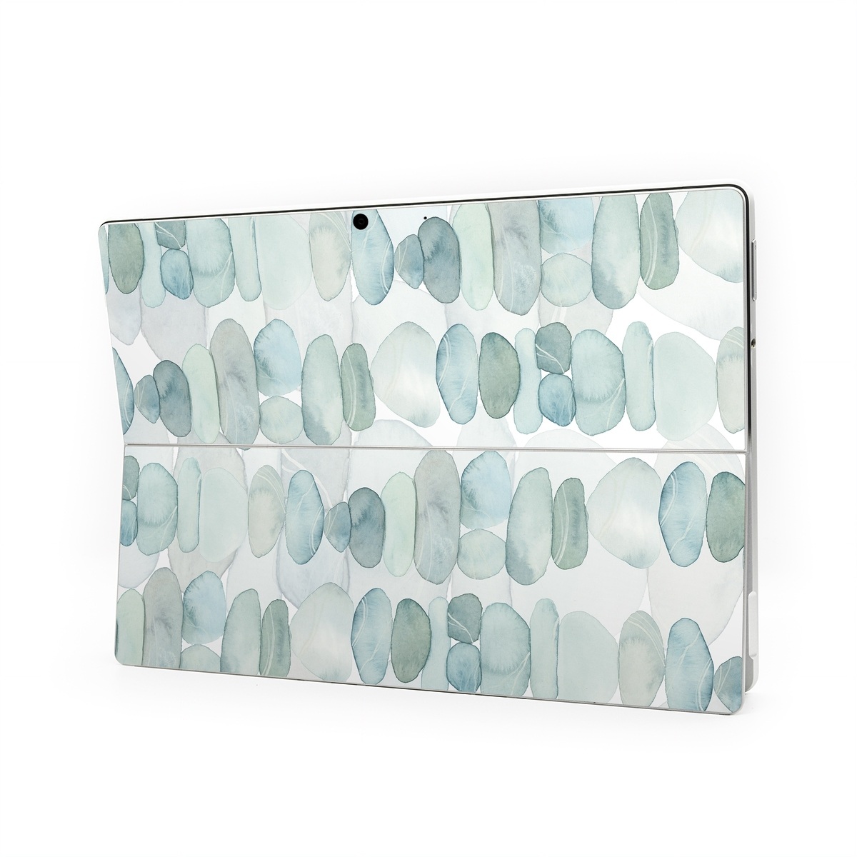 iStyles Microsoft Surface Pro Series Skin design of Aqua, Turquoise, Circle, Pattern, Transparent material, Glass, with white, blue colors, and tagged with patterns, objects, abstract, blue, blues, pebbles, stones, watercolor.