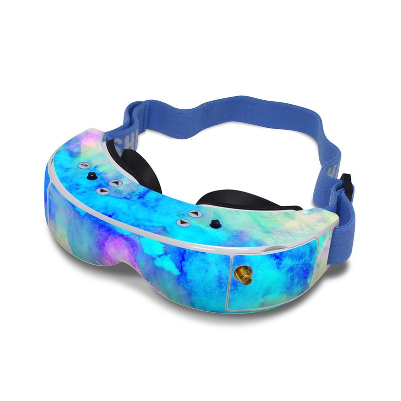iStyles Fat Shark Dominator V2 Skin design of Blue, Turquoise, Aqua, Pattern, Dye, Design, Sky, Electric blue, Art, Watercolor paint, with blue, purple colors, and tagged with abstract, patterns.