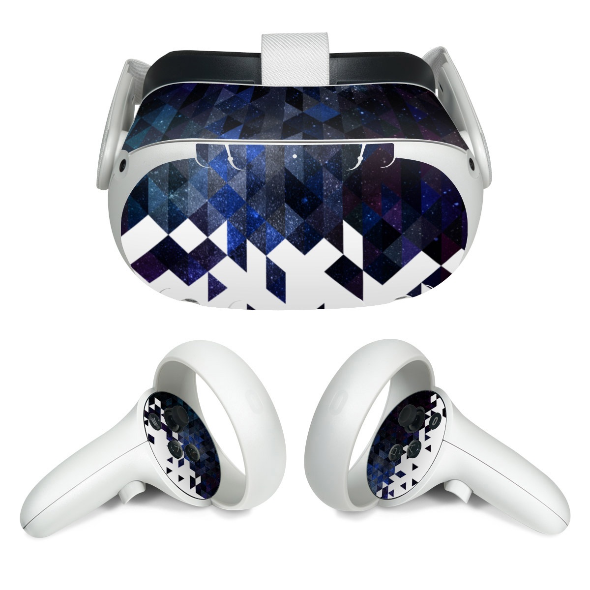 iStyles Meta Quest 2 Skin design of Text, Pattern, Graphic design, Font, Purple, Design, Line, Triangle, Logo, Graphics, with black, blue, white colors, and tagged with patterns, space, geometry, space, stars, triangles.