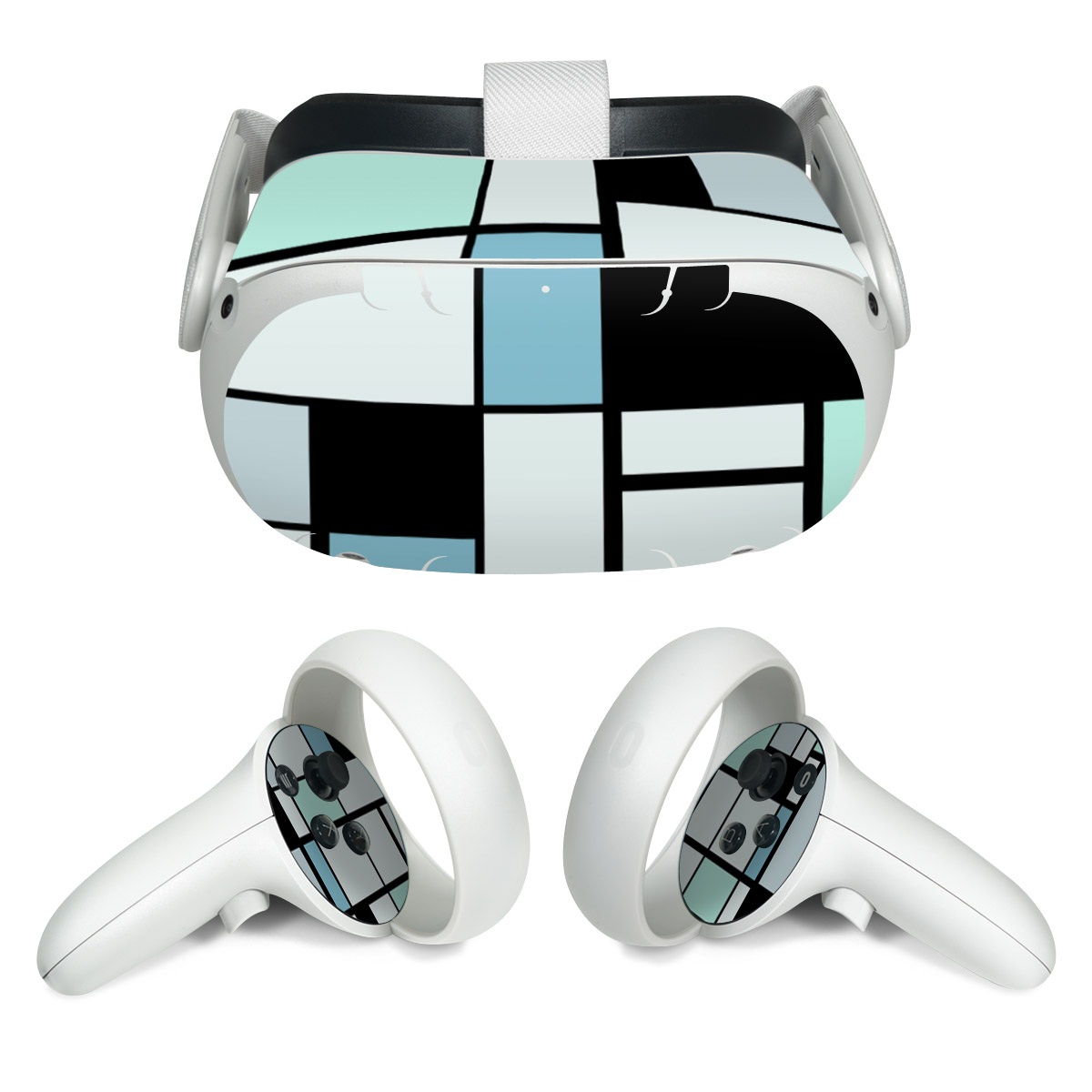 iStyles Meta Quest 2 Skin design of Blue, Line, Turquoise, Pattern, Rectangle, Design, Parallel, Square, Symmetry, Tints and shades, with black, blue, green colors, and tagged with patterns, blocks, blue, cool, geometry, lines.