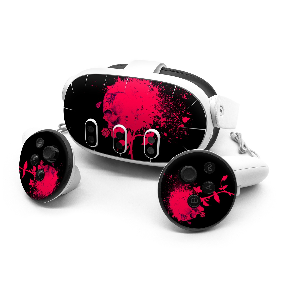 iStyles Meta Quest 3 Series Skin design of Red, Black, Pink, Graphic design, Magenta, Visual arts, Graphics, Illustration, Plant, Art, with black, red colors, and tagged with flowers, skulls, dark, goth, gothic, rose, roses, skull.