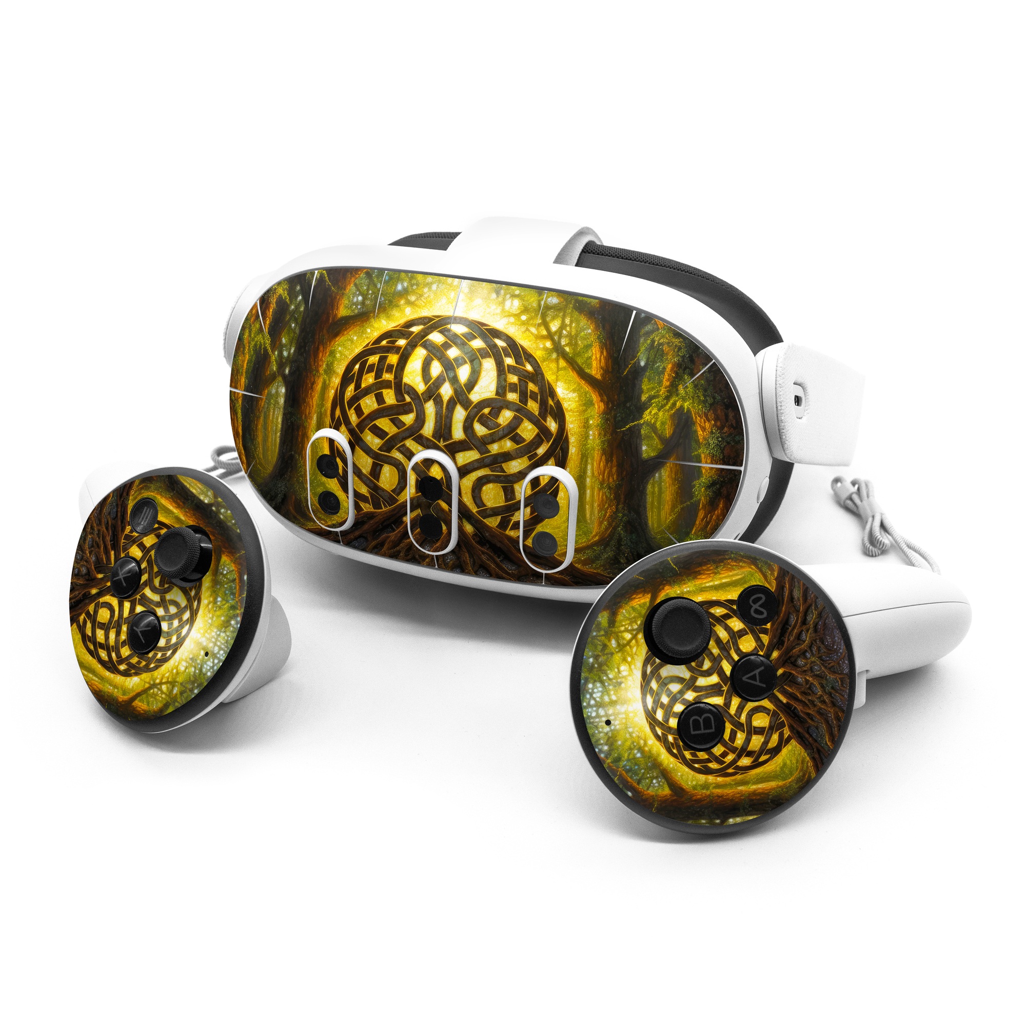 iStyles Meta Quest 3 Series Skin design of Art, Pattern, Circle, Symmetry, Tints and shades, Visual arts, Design, Electric blue, Graphics, Font, with green, brown, black, gray, yellow, orange, white colors, and tagged with fineart, signs, fantasy, nature, symbol, lasting, trees, roots, landscape.