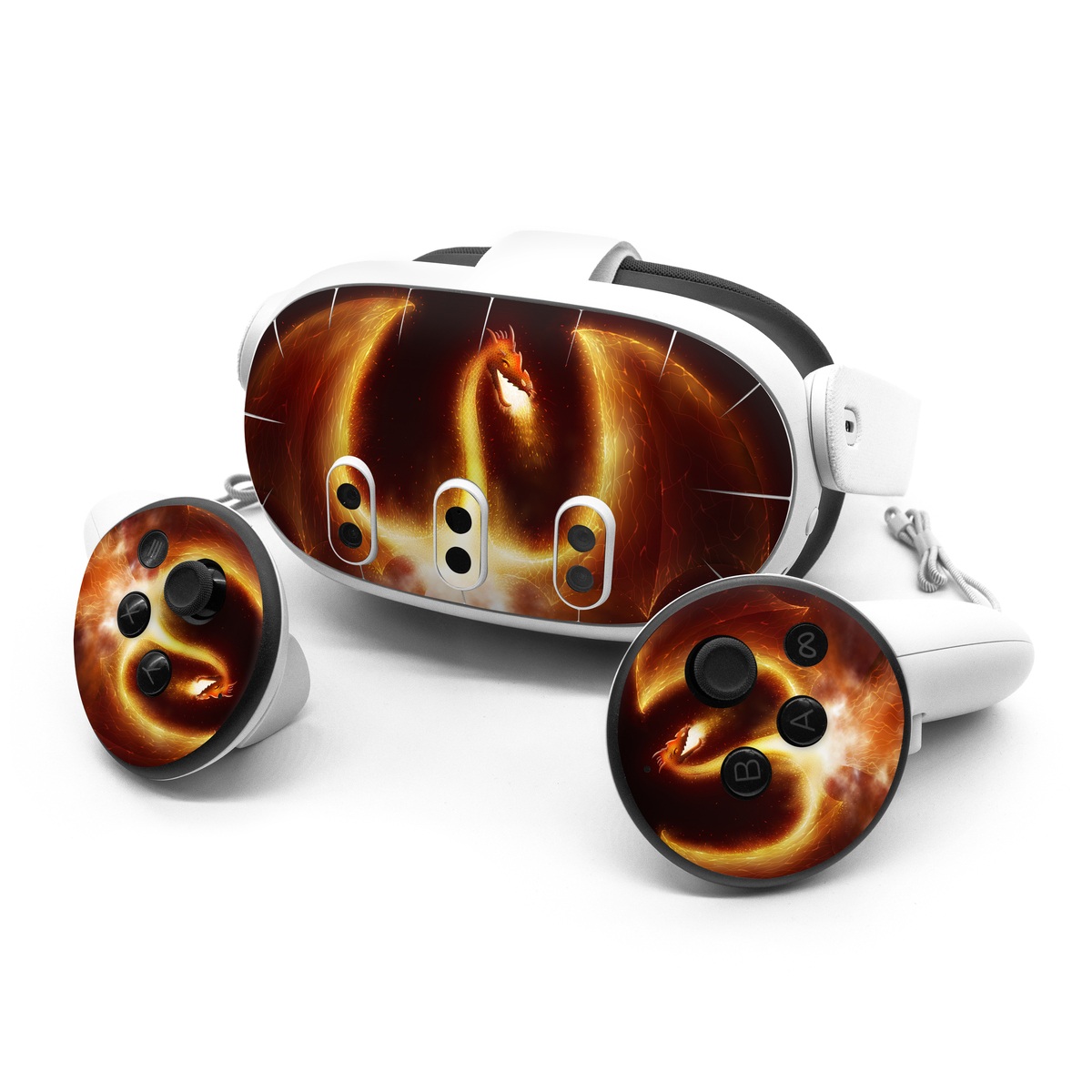 iStyles Meta Quest 3 Series Skin design of Light, Atmosphere, Orange, Space, Heat, Sky, Darkness, Art, Geological phenomenon, Universe, with black, red, green, pink colors, and tagged with flames, fantasy.