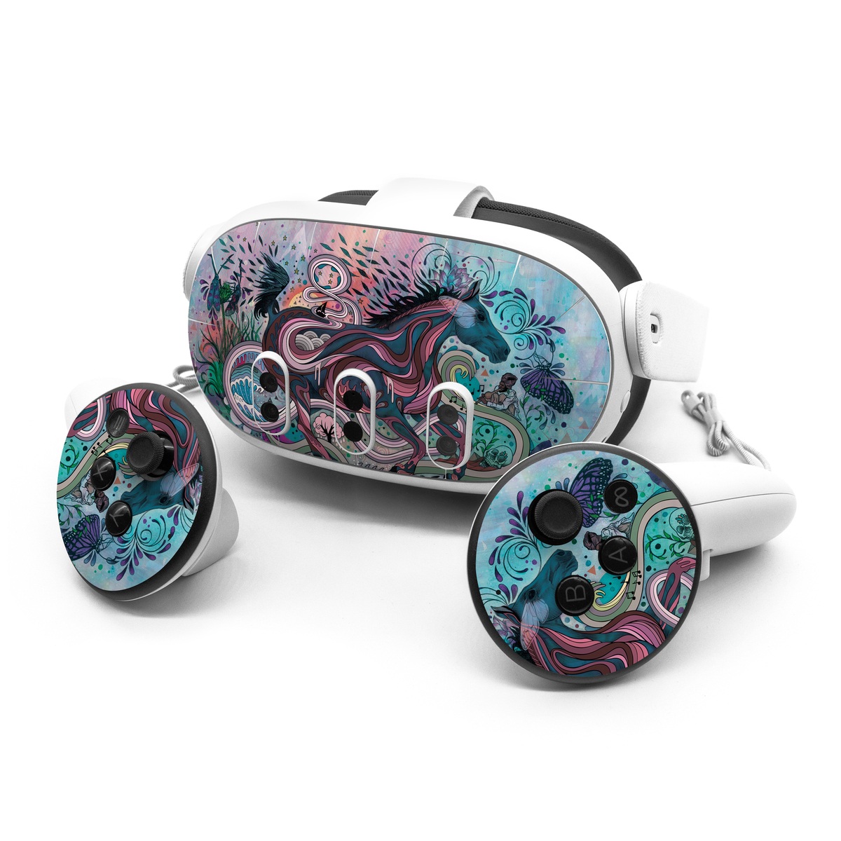 iStyles Meta Quest 3 Series Skin design of Illustration, Art, Visual arts, Graphic design, Fictional character, Psychedelic art, Pattern, Drawing, Painting, Mythology, with gray, black, blue, red, purple colors, and tagged with animals, patterns, nature.