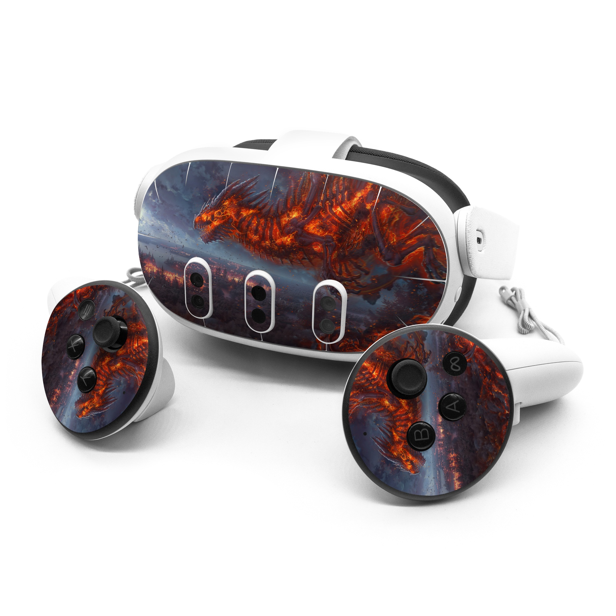 iStyles Meta Quest 3 Series Skin design of Geological phenomenon, Dragon, Cg artwork, Sky, Flame, Fictional character, Mythology, Lava, Demon, Heat, with red, blue, black colors, and tagged with fantasy, animals, nature, dragon, fire, flame, monster, skeleton.