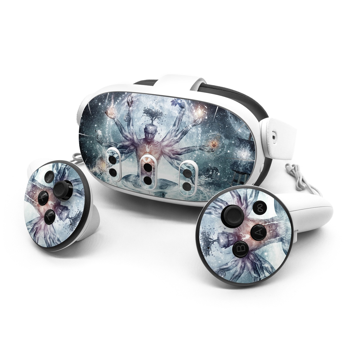 iStyles Meta Quest 3 Series Skin design of Mythology, Cg artwork, Water, Illustration, Fictional character, Space, Graphics, Art, Graphic design, with blue, red, orange, black, white colors, and tagged with people, fantasy, objects, nature, signs.