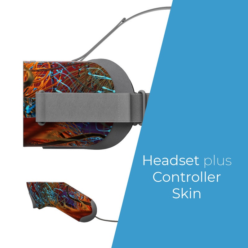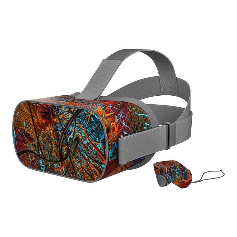iStyles Oculus Go Skin design of Orange, Tree, Electric blue, Organism, Fractal art, Plant, Art, Graphics, Space, Psychedelic art, with orange, blue, red, yellow, purple colors, and tagged with patterns.