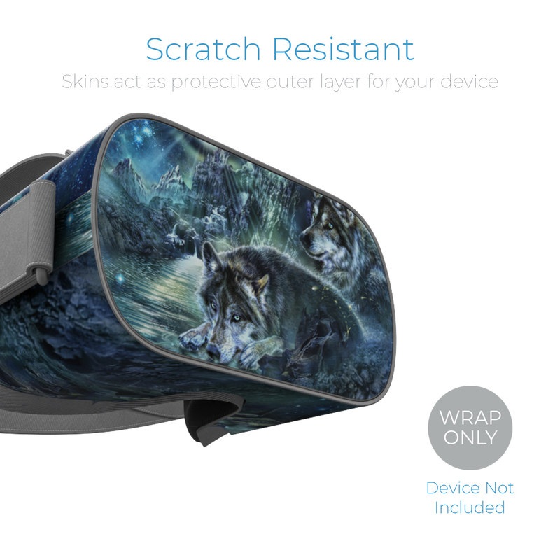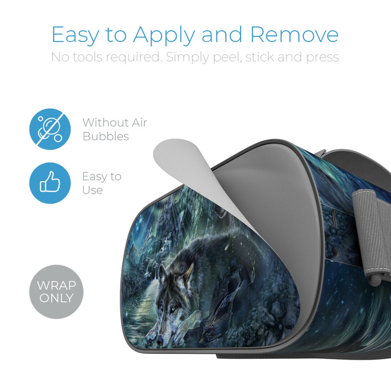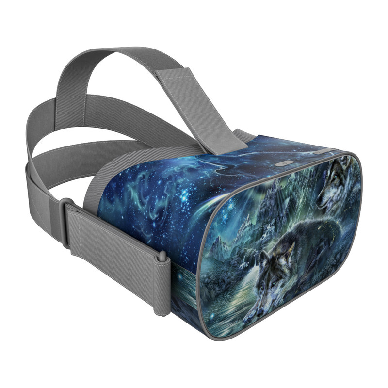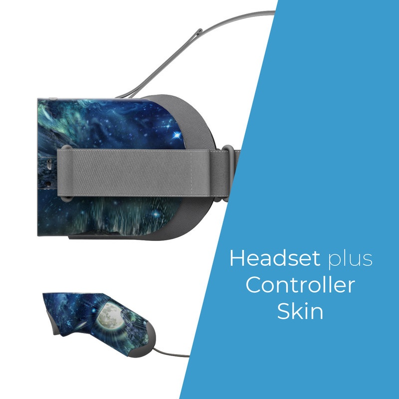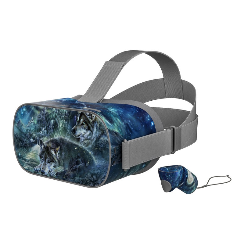iStyles Oculus Go Skin design of Cg artwork, Fictional character, Darkness, Werewolf, Illustration, Wolf, Mythical creature, Graphic design, Dragon, Mythology, with black, blue, gray, white colors, and tagged with animals, space.
