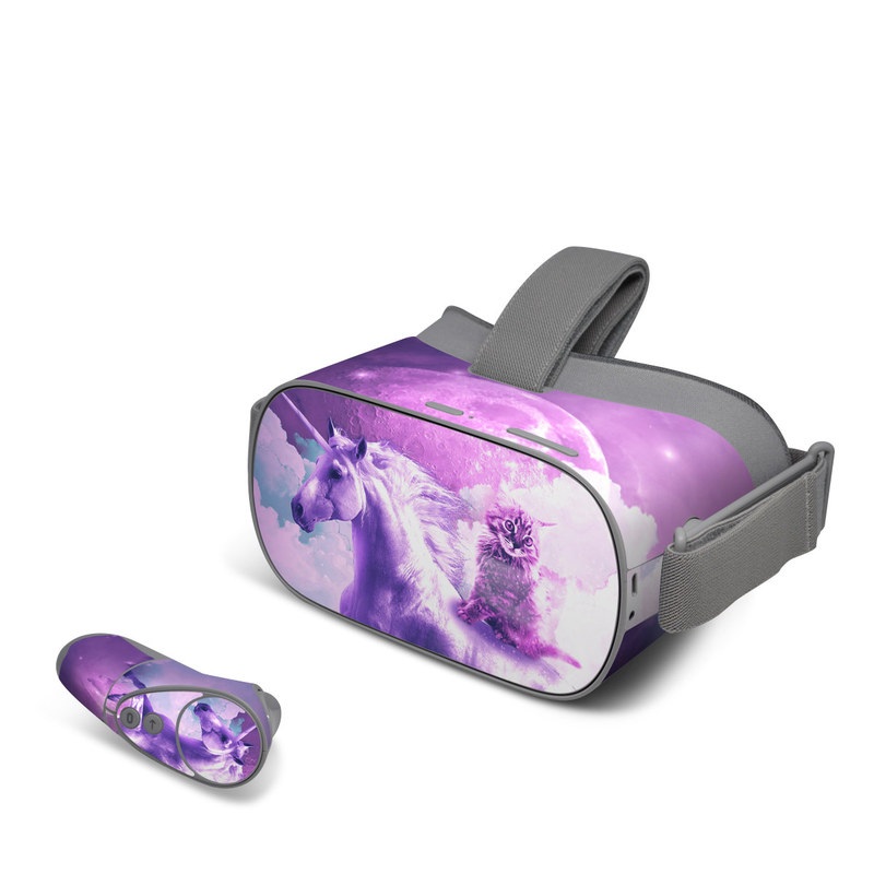 iStyles Oculus Go Skin design of Unicorn, Purple, Fictional character, Mythical creature, Violet, Cg artwork, Illustration, Mythology, with white, purple, blue, gray, black colors, and tagged with animals, fantasy, space, animal, animals, cat, fantasy, galaxy, horse, kitten, space, unicorn, universe.