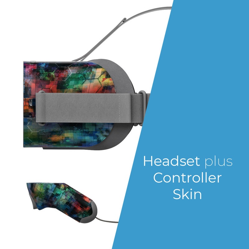 iStyles Oculus Go Skin design of Blue, Colorfulness, Pattern, Psychedelic art, Art, Sky, Design, Textile, Dye, Modern art, with black, blue, red, gray, green colors, and tagged with patterns, abstract.