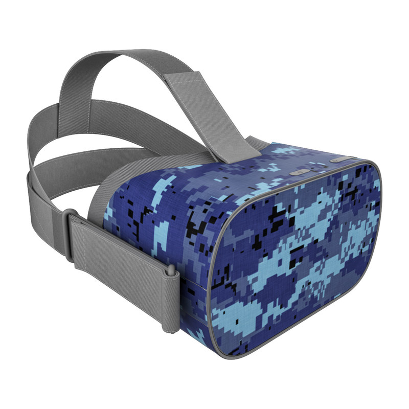 iStyles Oculus Go Skin design of Blue, Purple, Pattern, Lavender, Violet, Design, with blue, gray, black colors, and tagged with military, lookslike, patterns.