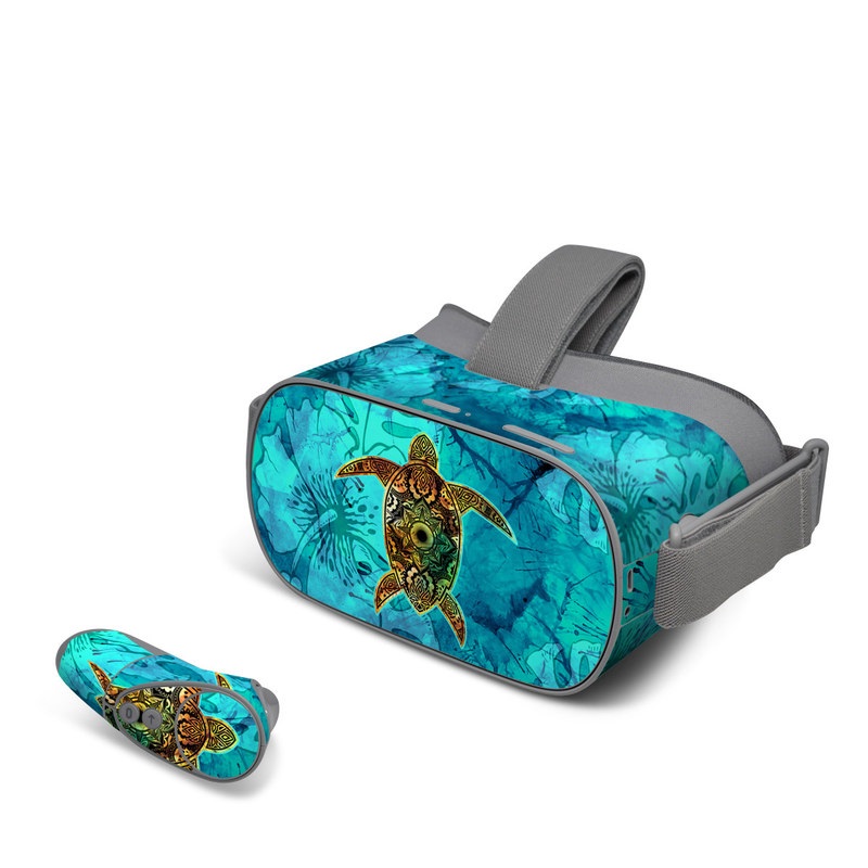 iStyles Oculus Go Skin design of Sea turtle, Green sea turtle, Turtle, Hawksbill sea turtle, Tortoise, Reptile, Loggerhead sea turtle, Illustration, Art, Pattern, with blue, black, green, gray, red colors, and tagged with animals.