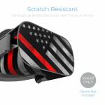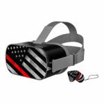 iStyles Oculus Go Skin design of Flag of the united states, Flag, Line, Black-and-white, Pattern, Flag Day (USA), Veterans day, Independence day, Memorial day, with black, white, gray, red colors, and tagged with flags, signs, fire, firstresponder, flag, rescue, thinline.