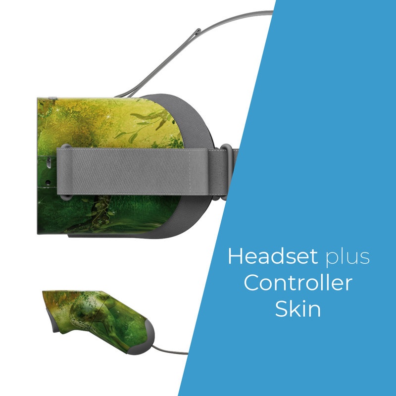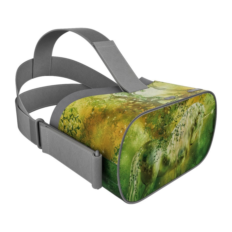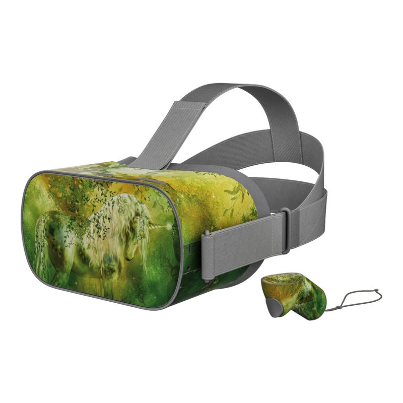 iStyles Oculus Go Skin design of Nature, Green, Painting, Art, Visual arts, Watercolor paint, Illustration, Modern art, Still life, with green, black, gray colors, and tagged with animals, nature, animals, butterfly, forest, nature, unicorn.