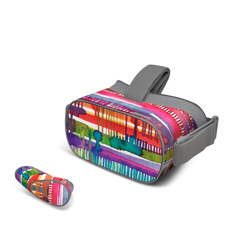 iStyles Oculus Go Skin design of Textile, Art, Magenta, Hair accessory, with white, red, orange, yellow, green, blue, purple, brown, pink colors, and tagged with patterns, abstract, abstract, bright, colorful, nature, watercolor.