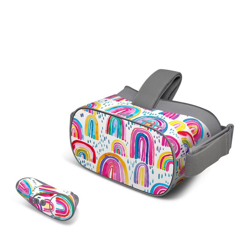 iStyles Oculus Go Skin design of Line, Pattern, Design, with white, orange, yellow, blue, pink, red, green colors, and tagged with patterns, nature, abstract, abstract, bright, colorful, rain, nature, rainbow, watercolor.