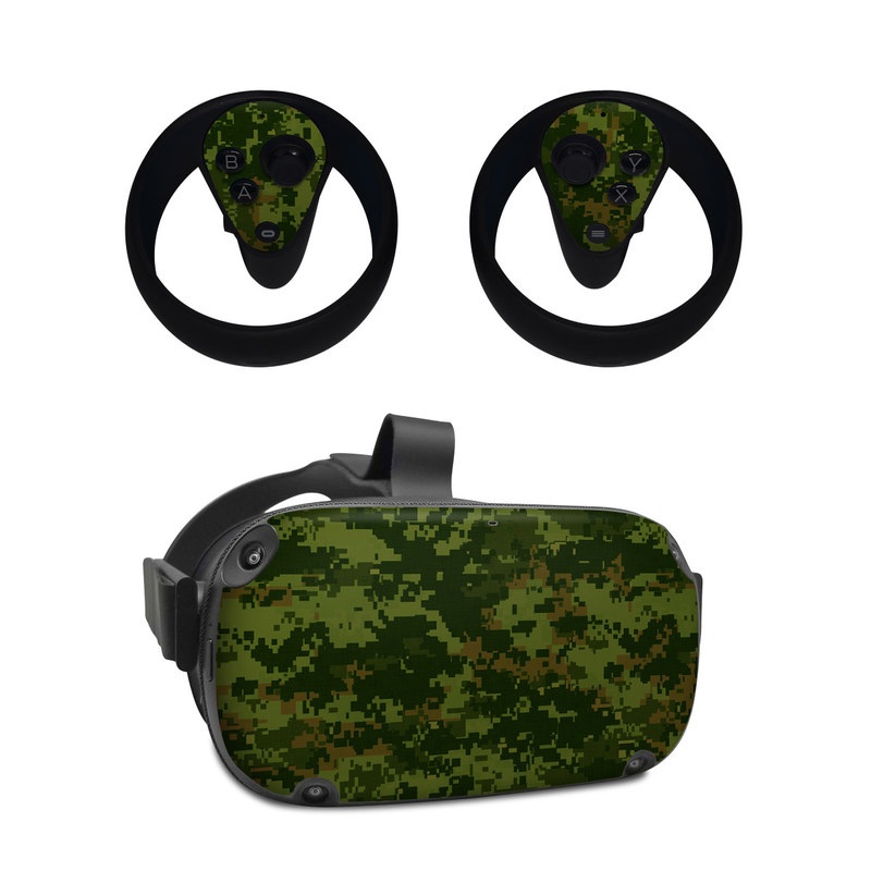 iStyles Oculus Quest Skin design of Military camouflage, Green, Pattern, Uniform, Camouflage, Clothing, Design, Leaf, Plant, with green, brown colors, and tagged with military, lookslike, patterns.