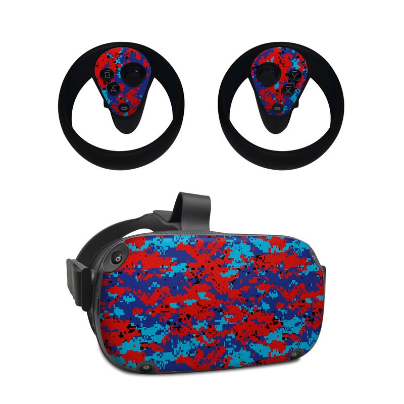 iStyles Oculus Quest Skin design of Blue, Red, Pattern, Textile, Electric blue, with blue, red colors, and tagged with military, patterns, lookslike, camo, digitalcamo.