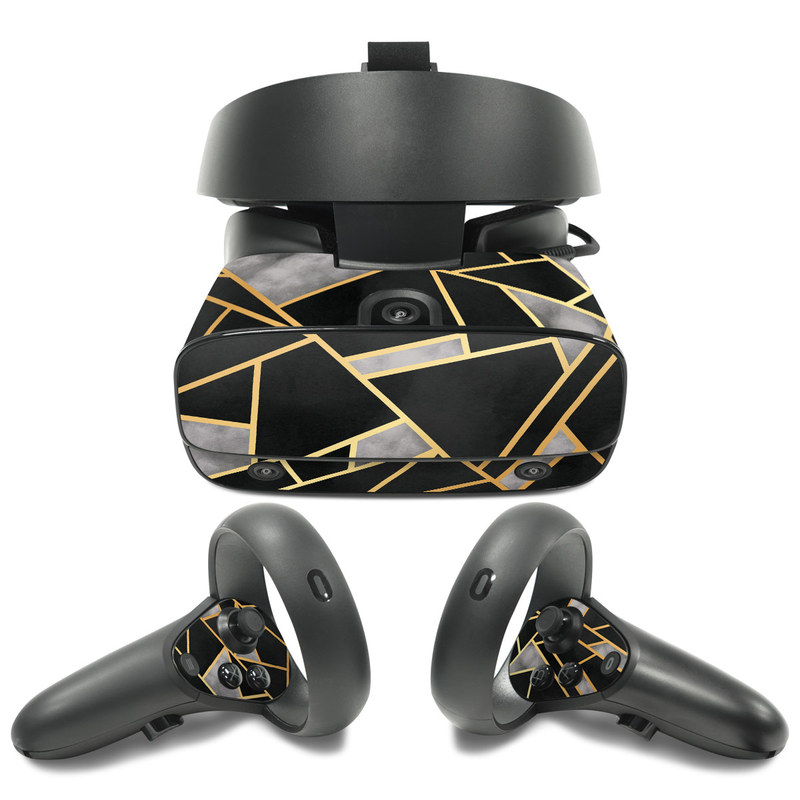 iStyles Oculus Rift S Skin design of Pattern, Triangle, Yellow, Line, Tile, Floor, Design, Symmetry, Architecture, Flooring, with black, gray, yellow colors, and tagged with patterns.