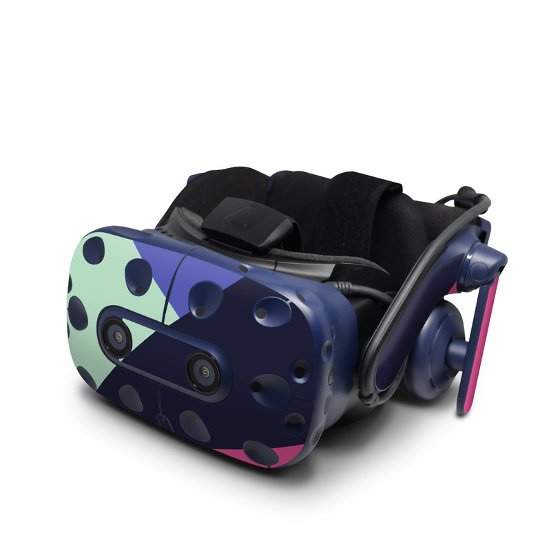 iStyles HTC VIVE Pro Skin design of Purple, Violet, Line, Magenta, Graphic design, Triangle, Pattern, Design, Material property, Font, with black, blue, green, pink colors, and tagged with patterns, block, blocking, color, colorblock, geometric, shape, simple.