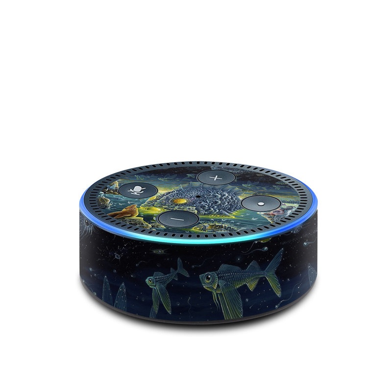 iStyles Amazon Echo Dot 2nd Gen Skin design of Organism, Water, Illustration, Art, Painting, Cg artwork, Fiction, Fictional character, Marine biology, Mythology, with black, gray, blue, green colors, and tagged with animals, fantasy.