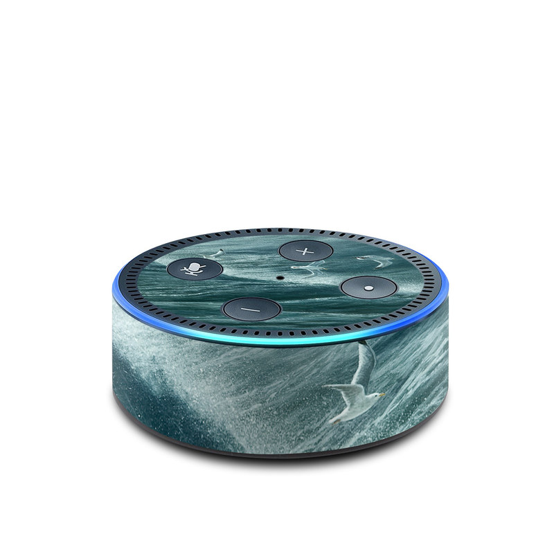iStyles Amazon Echo Dot 2nd Gen Skin design of Wave, Wind wave, Tide, Sea, Ocean, Water, Sky, Wind, Tsunami, Surfing, with blue, white colors, and tagged with animals, nature, bay, beach, ocean, sea, seagulls, swell, wave.